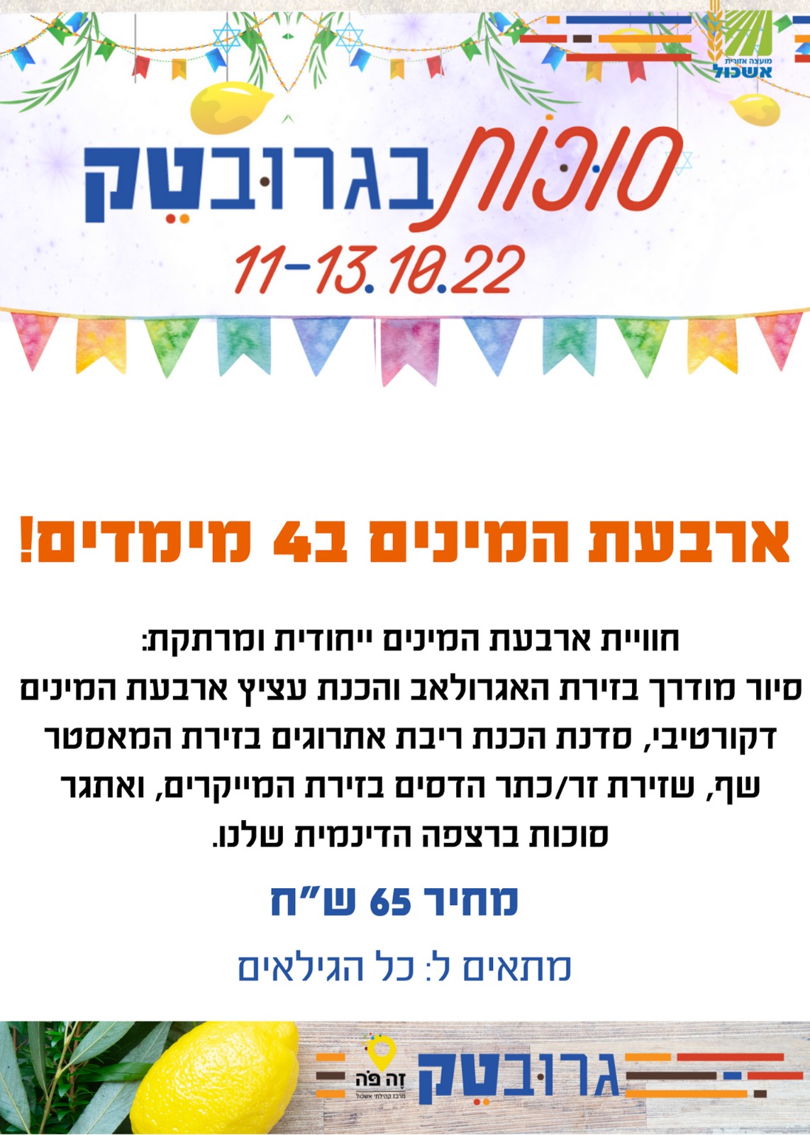 חוויית ארבעת המינים ייחודית ומרתקת כולל סדנת שף, אגרו לאב ומייקרים.